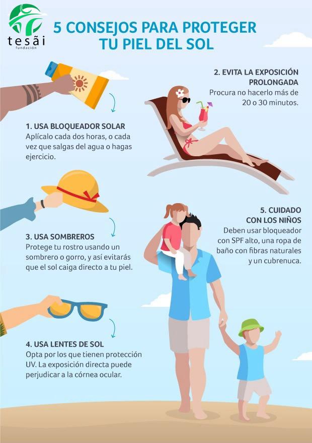 5. Cuidar especialmente a los niños y niñas, ya que su piel es más sensible al daño solar y no debe exponerse directamente al sol en los primeros meses de vida.